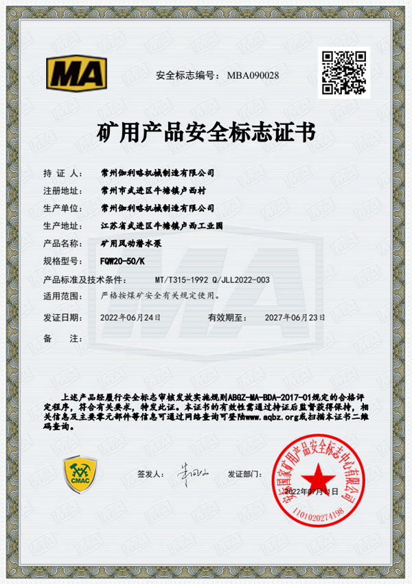 • 礦用安全標(biāo)志證書(shū)-FQW20-50/K