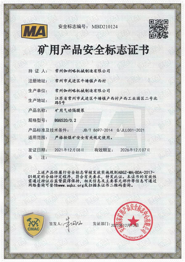 • 礦用安全標(biāo)志證書(shū)-BQG520/0.2